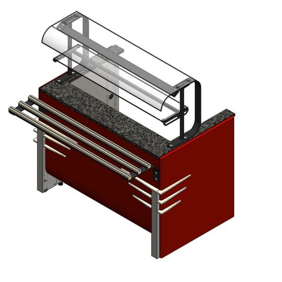 Прилавок нейтральный П-образный относится к линии раздачи «Case» торговой марки «Refettorio». Столешница выполнена с вырезом и имеет П-образную форму. Столешница из искусственного камня. Для удобства подключения электроприборов на панели прилавка вмонтированы розетки с защитными крышками. Прилавок оснащен стеклянными полками. Максимальная распределенная нагрузка на стеклянную полку 5кг. Имеет светодиодную подсветку в нише фасадной части и подсветку рабочей зоны. В стандартный комплект поставки направляющая и фасады не входят (доп. опция). Ширина прилавка, указанная в ее наименовании, не учитывает ширину фасадов. Полный габаритный размер по ширине указан в чертеже общего вида прилавка.