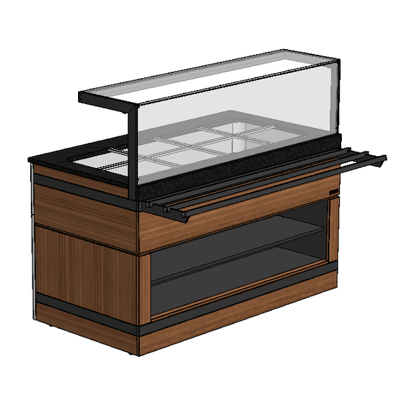 Мармит для вторых блюд с автоналивом линии раздачи «Filin» торговой марки Refettorio. Предназначен для кратковременного хранения в горячем состоянии вторых блюд в функциональных емкостях и раздачи их потребителю. Столешница: искусственный камень (кварцевый агломерат) - прочный износостойкий материал Теплоноситель: паровой Нагреватель: пластинчатый электронагреватель (ПЭН) Управление: терморегулятор (точная регулировка температуры) от 30 до 90°С Дополнительные функции: система автоналива (поддержание уровня воды в ванне). Максимальная распределенная нагрузка: до 15 кг (стеклянная полка) Подсветка: светодиодная подсветка рабочей зоны и фасадной ниши 3000 К Стандартная комплектация: мармит, стеклянная полка, лицевой фасад из МДФ, направляющая для подносов из крашеной стали Дополнительные опции (не входят в комплект поставки): боковые фасады, гастроемкости.