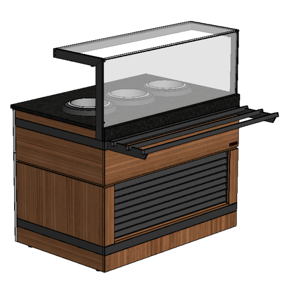 Мармит для первых блюд линии раздачи «Filin» торговой марки Refettorio. Предназначен для поддержания в горячем состоянии емкостей с первыми блюдами и раздачи их потребителю. Столешница: искусственный камень (кварцевый агломерат) - прочный износостойкий материал Количество встроенных электросупниц: 3 шт. Вместимость супницы: 10 литров Управление: терморегулятор (точная регулировка температуры) от 0 до 95°С Максимальная распределенная нагрузка: до 10 кг (на стеклянную полку) Подсветка: светодиодная подсветка рабочей зоны и фасадной ниши 3000 К Стандартная комплектация: мармит, стеклянная полка, лицевой фасад из МДФ, направляющая для подносов из крашеной стали, электросупницы Дополнительные опции (не входят в комплект поставки): боковые фасады.