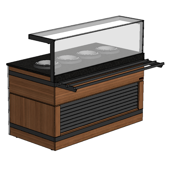 Мармит для первых блюд линии раздачи «Filin» торговой марки Refettorio. Предназначен для поддержания в горячем состоянии емкостей с первыми блюдами и раздачи их потребителю. Столешница: искусственный камень (кварцевый агломерат) - прочный износостойкий материал Количество встроенных электросупниц: 4 шт. Вместимость супницы: 10 литров Управление: терморегулятор (точная регулировка температуры) от 0 до 95°С Максимальная распределенная нагрузка: до 15 кг (на стеклянную полку) Подсветка: светодиодная подсветка рабочей зоны и фасадной ниши 3000 К Стандартная комплектация: мармит, стеклянная полка, лицевой фасад из МДФ, направляющая для подносов из крашеной стали, электросупницы Дополнительные опции (не входят в комплект поставки): боковые фасады.