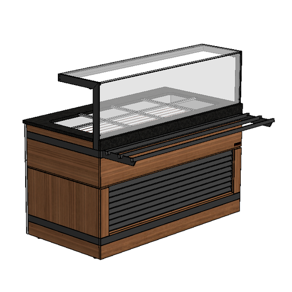 Прилавок холодильный линии раздачи «Filin» торговой марки Refettorio. Прилавок предназначен для кратковременного хранения, демонстрации холодных блюд и охлажденных напитков потребителю. Столешница: искусственный камень (кварцевый агломерат) - прочный износостойкий материал Холодообеспечение: встроенное Тип оттаивания: естественный Управление: от 1 до 10°С Максимальная распределенная нагрузка: до 15 кг (на стеклянную полку) Подсветка: светодиодная подсветка рабочей зоны и фасадной ниши 3000 К Стандартная комплектация: прилавок, стеклянная полка, лицевой фасад из МДФ, направляющая для подносов из крашеной стали Дополнительные опции (не входят в комплект поставки): боковые фасады, гастроемкости.