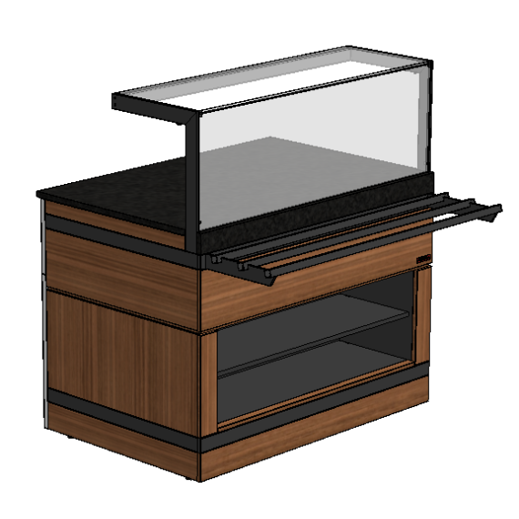 Прилавок нейтральный с полкой и встроенной розеткой линии раздачи «Filin» торговой марки Refettorio. Используется в качестве вспомогательного элемента. Столешница: искусственный камень (кварцевый агломерат) - прочный износостойкий материал со встроенной розеткой Максимальная распределенная нагрузка: до 10 кг (на стеклянную полку), до 100 кг (на столешницу прилавка) Подсветка: светодиодная подсветка рабочей зоны и фасадной части 3000 К Стандартная комплектация: прилавок, стеклянная полка, лицевой фасад из МДФ, направляющая для подносов из крашеной стали Дополнительные опции (не входят в комплект поставки): боковые фасады.