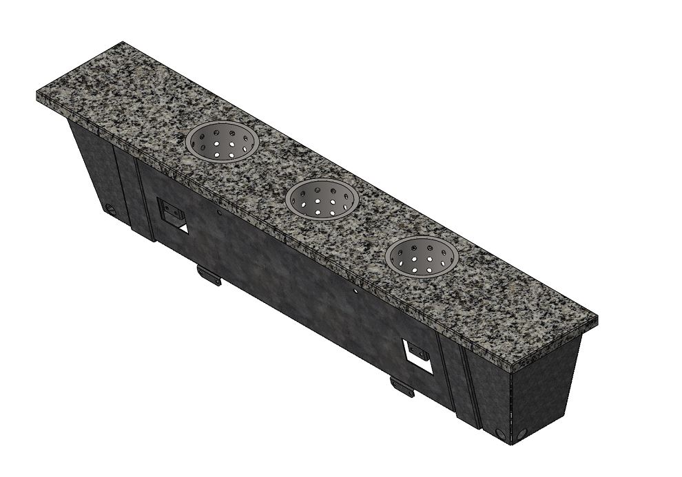 Столешница-вставка для прилавков шведских столов «Capital» с каменной столешницей. Исполнение - островное. Применяется как дополнительное пространство столешницы и имеет стаканы для столовых приборов.