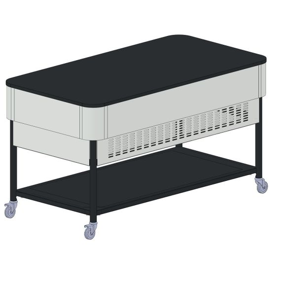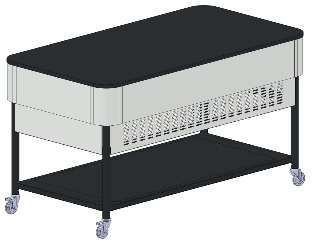 Прилавок нейтральный без полки относится к относится к Шведским столам «Furshet» торговой марки «Refettorio». Прилавок используется в качестве вспомогательного элемента. Прилавок передвижной, оснащен колесами. Исполнение - островное. Столешница из искусственного камня. Освещение в модуле отсутствует. В стандартный комплект поставки фасады не входят (доп. опция).