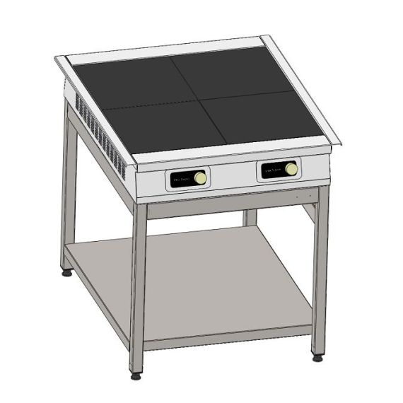 Плита индукционная электрическая относится к торговой марке «Новая энергия» предназначена для тепловой обработки полуфабрикатов в специально разработанных для индукционных плит функциональных емкостях (варки, жарки, тушения и пассировки) на предприятиях общественного питания. Плита имеет островное исполнение (доступ к плите осуществляется с 2-х сторон). Имеет 4 конфорки, с общей потребляемой мощностью 14 кВт. Допустимая максимальная распределённая нагрузка на конфорку 50кг. Полезный диаметр посуды не менее 12см. Время закипания 1л воды примерно 2 минуты. Плита оснащена регулируемыми по высоте опорами.