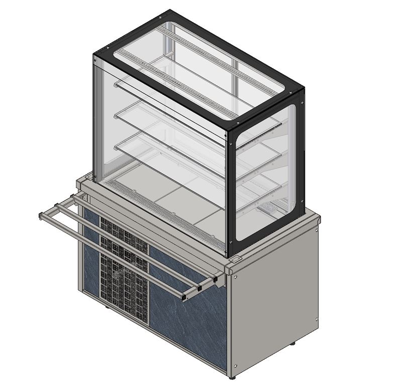 Витрина холодильная относится к линии раздачи «City» торговой марки «Refettorio». Витрина с внутренним охлаждаемым объемом предназначена для эффектной демонстрации и временного хранения продуктов. Столешница из нержавеющей стали. Класс - высокотемпературный (от 1° до 10°). Тип оттаивания - автоматический. Размещение пищевых продуктов полочное четырёхъярусное, включая дно полезного объёма. Доступ к продуктам со стороны рабочего персонала осуществляется с помощью раздвижных створок витрины, со стороны потребителя доступ отсутствует. Максимальная распределенная нагрузка на стеклянную полку 15кг. Имеет светодиодную подсветку ниши фасадной части и подсветку витрины. Со стороны персонала в витрине есть ниша, которая может быть снабжена створчатой дверкой (доп. опция). В стандартный комплект поставки направляющая, лицевые и боковые панели не входят (доп. опция). Ширина витрины, указанная в ее наименовании, не учитывает ширину боковых панелей. Полный габаритный размер по ширин.