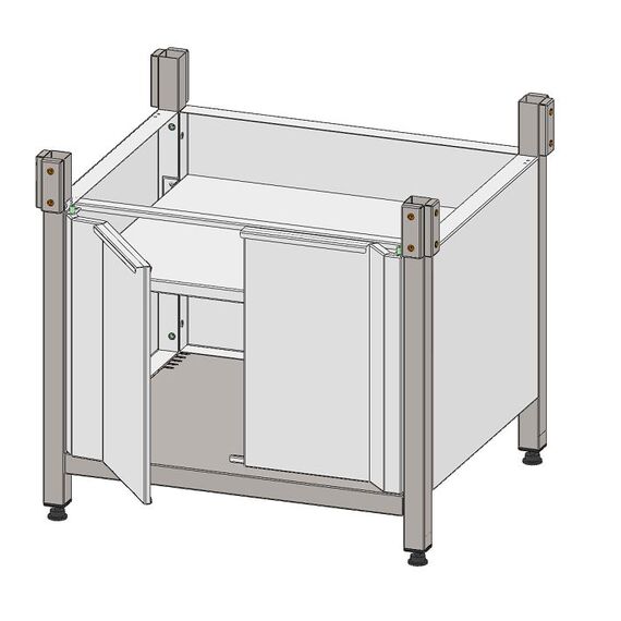 Подставка для плиты индукционной ПЭИ-4 (700 серии). В подставку встроена ниша с полкой и дверцами. Масса 26, кг. Габаритные размеры: 765х656х700, мм.