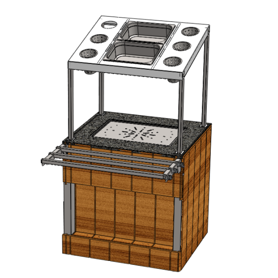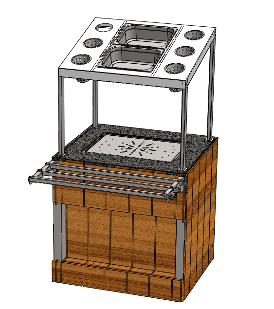 Диспенсер для подносов и столовых приборов относится к линии раздачи «Capital» торговой марки «Refettorio». Столешница из искусственного камня. Оснащен функциональными емкостями (стаканы+GN). Вместимость: стаканы 6 шт, 2 гастроемкости GN 1/2 Н65. Имеет светодиодную подсветку фасадной части. Со стороны персонала в диспенсере есть ниша для инвентаря. Как дополнительная опция ниша может быть снабжена створчатой дверкой. В стандартный комплект поставки направляющая и фасады не входят (доп. опция). Ширина прилавка, указанная в ее наименовании, не учитывает ширину фасадов. Полный габаритный размер по ширине указан в чертеже общего вида прилавка.