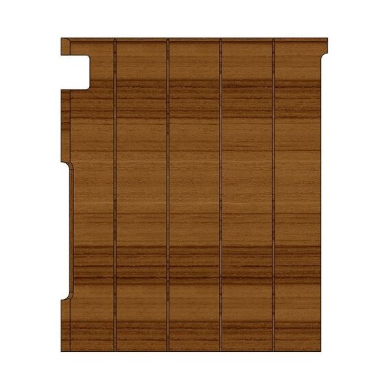 Фасад боковой предназначен для прилавка кассового Г-образного правого 1505 «Capital» со столешницей из нержавеющей стали. Материал фасадных панелей – МДФ. Фасад имеет вырез под направляющую для Г-образной кассы.