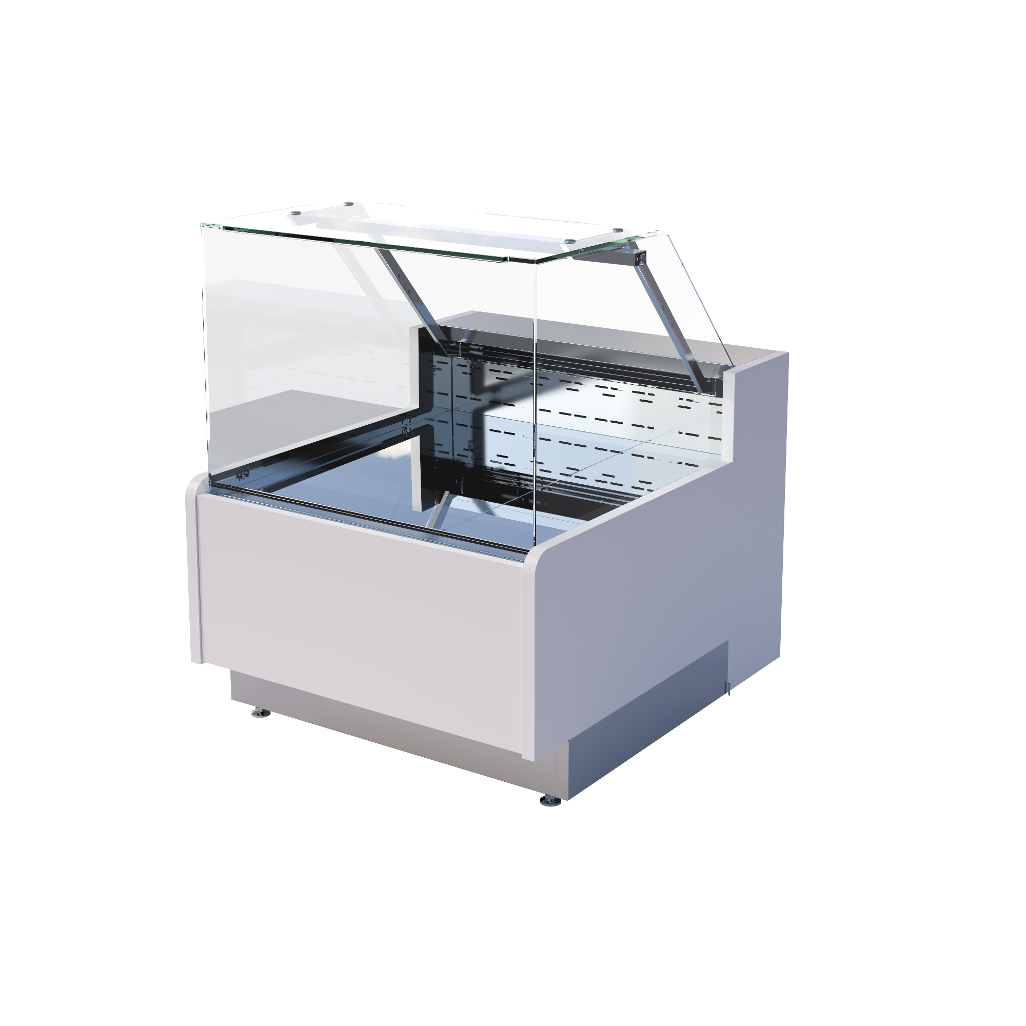 Витрина гастрономическая холодильная закрытая относится к гастрономической линии «Vista» торговой марки «Refettorio». Температурный режим +1…+7°C. Витрина предназначена для подключения к внешнему холодильному агрегату. Система бережного обдува GentleCooling снижает заветривание продукта при работе витрины. Верхняя LED-подсветка — два ряда светодиодной ленты. Фронтальное стекло и передняя панель открываются с помощью газлифтов для удобства обслуживания и ухода за витриной. Имеется система обдува фронтального стекла против запотевания. Электронный контроллер с функцией автоматической «умной» оттайки. Дополнительно установлена система выпаривания конденсата. Все внешние и внутренние поверхности из нержавеющей стали AISI 430: стойки и кронштейны, корпус витрины, поддоны выкладки, задняя стенка и цоколь. Столешница выполнена из текстурированной нержавеющей стали. Задние раздвижные дверки, фронтальные и боковые панели не входят в стандартную комплектацию.