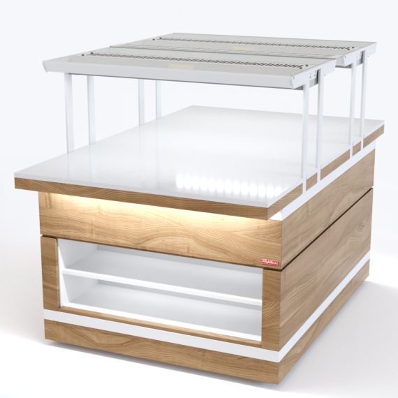 Мармит с инфракрасным нагревом относится к Шведским столам «Filin» торговой марки «Refettorio». Мармит предназначен для поддержания температуры готовых блюд перед раздачей на таких объектах как: рестораны, кафе, столовые, гостиницы с питанием «шведский стол», фудкорты и т. д. Исполнение - сдвоенное. Мармит оснащён стеклянной полкой со встроенным инфракрасным излучателем. Температурный диапазон на поверхности стола 40-60 С°. Максимальная распределенная нагрузка на стеклянную полку 10кг. Имеет светодиодную подсветку в нише фасадной части и подсветку рабочей зоны. В стандартный комплект поставки боковые фасады не входят (доп. опция). В комплект входит: Н - фасада с нишей Ж - фасад с жалюзи.