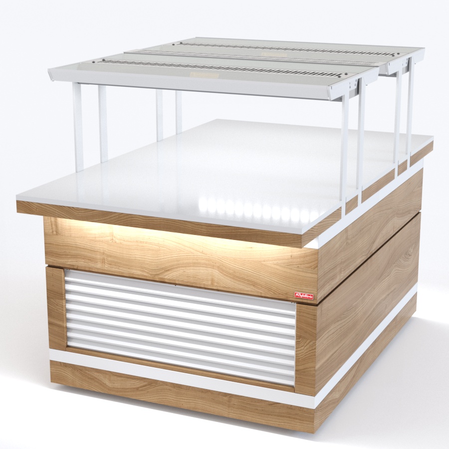 Мармит с инфракрасным нагревом относится к Шведским столам «Filin» торговой марки «Refettorio». Мармит предназначен для поддержания температуры готовых блюд перед раздачей на таких объектах как: рестораны, кафе, столовые, гостиницы с питанием «шведский стол», фудкорты и т. д. Исполнение - сдвоенное. Мармит оснащён стеклянной полкой со встроенным инфракрасным излучателем. Температурный диапазон на поверхности стола 40-60 С°. Максимальная распределенная нагрузка на стеклянную полку 10кг. Имеет светодиодную подсветку в нише фасадной части и подсветку рабочей зоны. В стандартный комплект поставки боковые фасады не входят (доп. опция). В комплект входит: Ж - фасад с жалюзи К - фасад комбинированный ниша/жалюзи.
