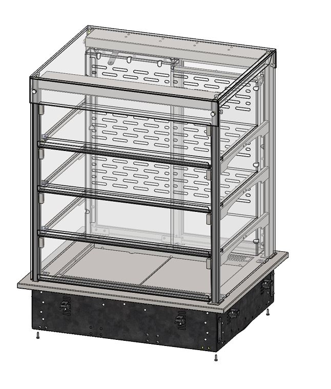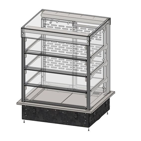 Витрина тепловая относится к встроенному оборудованию Drop In торговой марки Refettorio. Витрина с внутренним тепловым объемом, предназначена для эффектной демонстрации и временного хранения готовых горячих блюд и выпечки. Рабочая температура витрины от 30° до 60°. В корпусе прилавка установлен ТЭН (трубчатый электронагреватель). Размещение пищевых продуктов полочное четырёхъярусное, включая дно полезного объёма. Доступ к продуктам со стороны рабочего персонала осуществляется с помощью раздвижных створок витрины, со стороны потребителя доступ через откидные крышки. Максимальная распределенная нагрузка на стеклянную полку 10кг. Имеет светодиодную подсветку витрины.