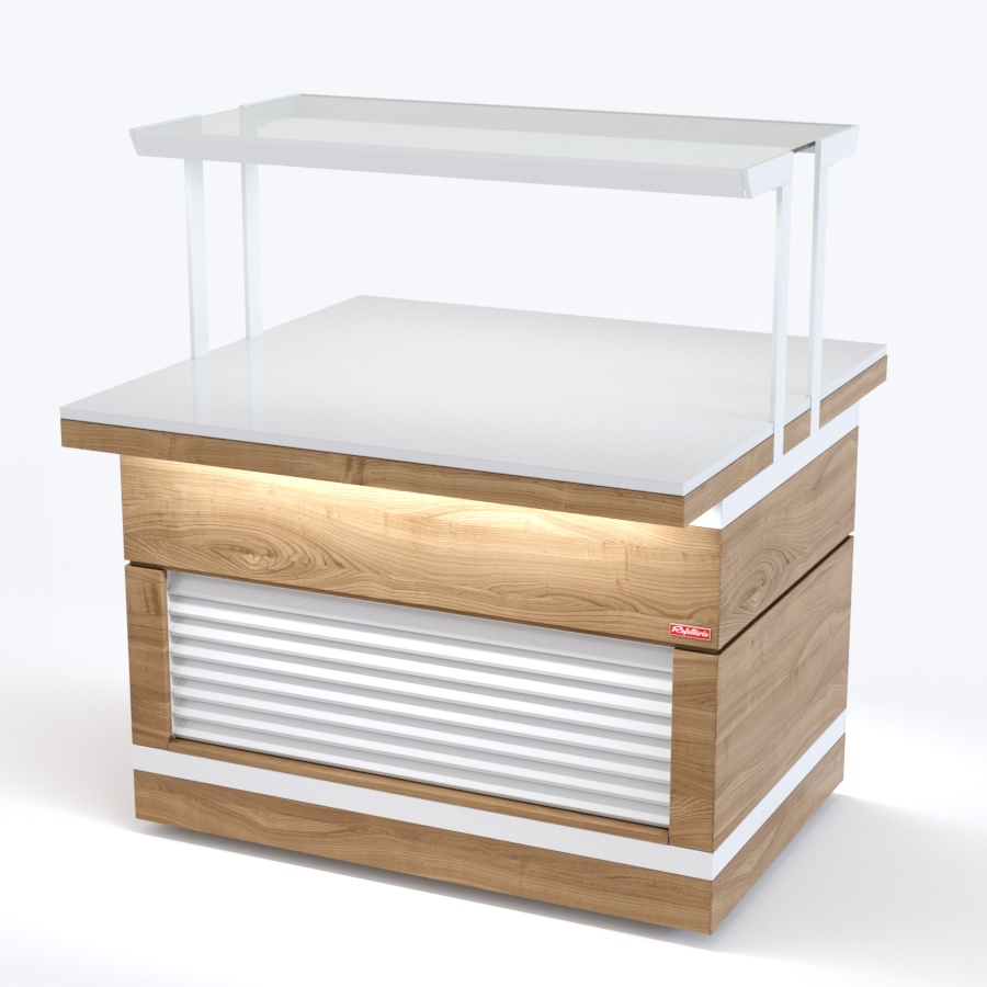 Прилавок нейтральный относится к относится к Шведским столам «Filin» торговой марки «Refettorio». Прилавок используется в качестве вспомогательного элемента. Исполнение - островное. Столешница из искусственного камня. Максимальная распределенная нагрузка на столешницу прилавка – 100 кг. Прилавок оснащён стеклянной полкой. Максимальная распределенная нагрузка на стеклянную полку – 10 кг. Имеет светодиодную подсветку фасадной части. В стандартный комплект поставки боковые фасады не входят (доп. опция) В комплект входит: ЖЖ- 2 фасада с жалюзи.