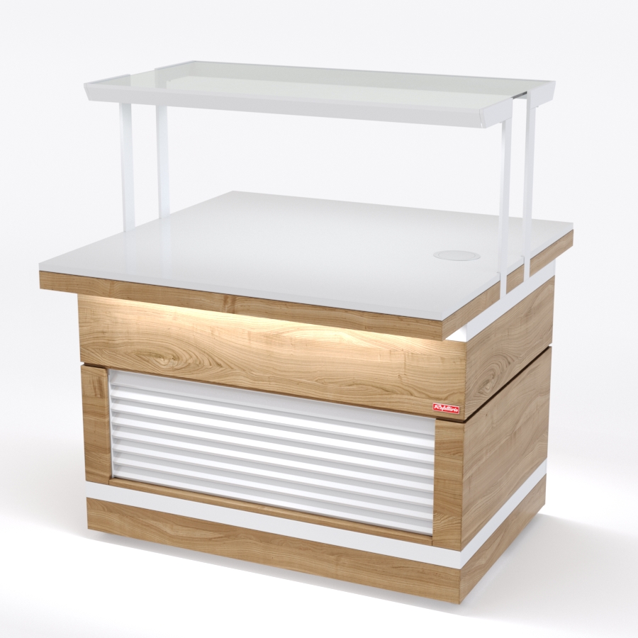 Прилавок нейтральный относится к относится к Шведским столам «Filin» торговой марки «Refettorio». Прилавок используется в качестве вспомогательного элемента. Исполнение - островное. Столешница из искусственного камня со встроенной розеткой. Максимальная распределенная нагрузка на столешницу прилавка – 100 кг. Имеет светодиодную подсветку фасадной части. В стандартный комплект поставки боковые фасады не входят (доп. опция) В комплект входит: ЖЖ- 2 фасада с жалюзи.