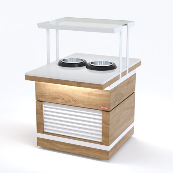 Мармит для первых блюд относится к Шведским столам «Filin» торговой марки «Refettorio». Мармит предназначен для поддержания в горячем состоянии емкостей с первыми блюдами и раздачи их потребителю. Исполнение - островное. Вместимость супницы - 10 литров. Электросупницы - 2шт. Терморегулятор от 0 до 95С°. Мармит оснащён стеклянной полкой. Максимальная распределенная нагрузка на стеклянную полку 10кг. Имеет светодиодную подсветку в нише фасадной части и подсветку рабочей зоны. В стандартный комплект поставки боковые фасады не входят (доп. опция). В комплект входит: Ж - 2 фасада с жалюзи.