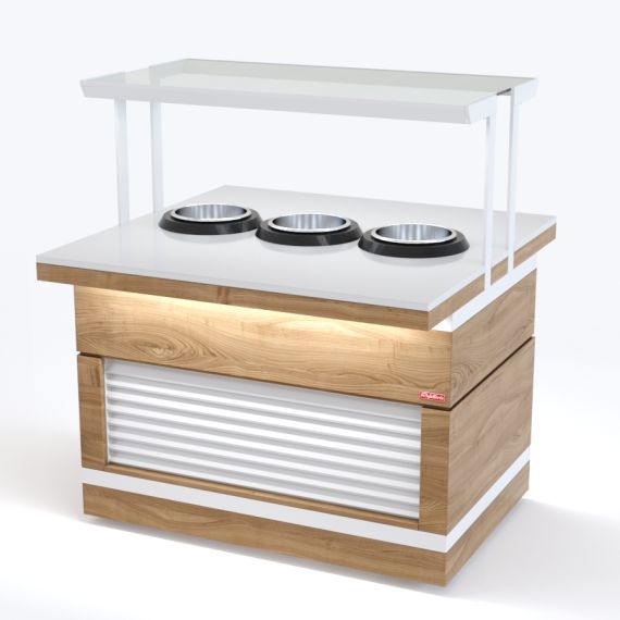 Мармит для первых блюд относится к Шведским столам «Filin» торговой марки «Refettorio». Мармит предназначен для поддержания в горячем состоянии емкостей с первыми блюдами и раздачи их потребителю. Исполнение - островное. Вместимость супницы - 10 литров. Электросупницы - 3шт. Терморегулятор от 0 до 95С°. Мармит оснащён стеклянной полкой. Максимальная распределенная нагрузка на стеклянную полку 10кг. Имеет светодиодную подсветку в нише фасадной части и подсветку рабочей зоны. В стандартный комплект поставки боковые фасады не входят (доп. опция). В комплект входит: ЖЖ - 2 фасада с жалюзи.