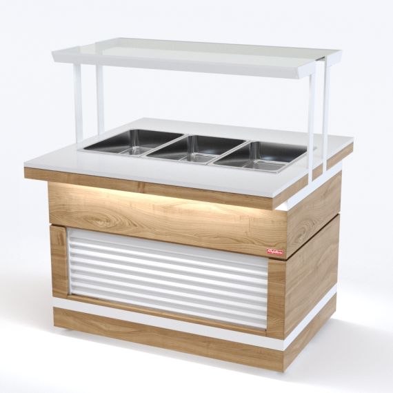Прилавок холодильный относится к Шведским столам «Filin» торговой марки «Refettorio». Предназначен для кратковременного хранения, демонстрации холодных блюд, закусок и салатов. Класс прилавка высокотемпературный (от 1° до 10). Холодообеспечение встроенное. Тип оттаивания: естественный. Исполнение - островное. Столешница из искусственного камня. Прилавок оснащён стеклянными полками. Максимальная распределенная нагрузка на полку 10кг. Имеет светодиодную подсветку ниши фасадной части и подсветку рабочей зоны. Фасадные части могут быть только с жалюзи. В стандартный комплект поставки гастроёмкости и фасады не входят (доп. опция). В комплект входит: ЖЖ - 2 фасада с жалюзи.
