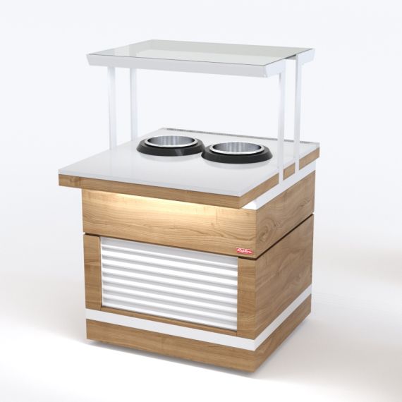 Мармит для первых блюд относится к Шведским столам «Filin» торговой марки «Refettorio». Мармит предназначен для поддержания в горячем состоянии емкостей с первыми блюдами и раздачи их потребителю. Исполнение - пристенное. Вместимость супницы - 10 литров. Электросупницы - 2шт. Терморегулятор от 0 до 95С°. Мармит оснащён стеклянной полкой. Максимальная распределенная нагрузка на стеклянную полку 10кг. Имеет светодиодную подсветку в нише фасадной части и подсветку рабочей зоны. В стандартный комплект поставки боковые фасады не входят (доп. опция). В комплект входит фасад с жалюзи - Ж.