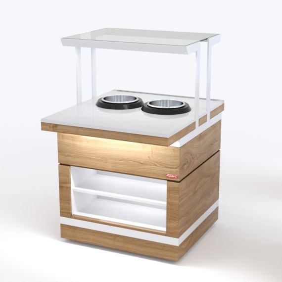 Мармит для первых блюд относится к Шведским столам «Filin» торговой марки «Refettorio». Мармит предназначен для поддержания в горячем состоянии емкостей с первыми блюдами и раздачи их потребителю. Исполнение - пристенное. Вместимость супницы - 10 литров. Электросупницы - 2шт. Терморегулятор от 0 до 95С°. Мармит оснащён стеклянной полкой. Максимальная распределенная нагрузка на стеклянную полку 10кг. Имеет светодиодную подсветку в нише фасадной части и подсветку рабочей зоны. В стандартный комплект поставки боковые фасады не входят (доп. опция). В комплект входит фасад с нишей - Н.