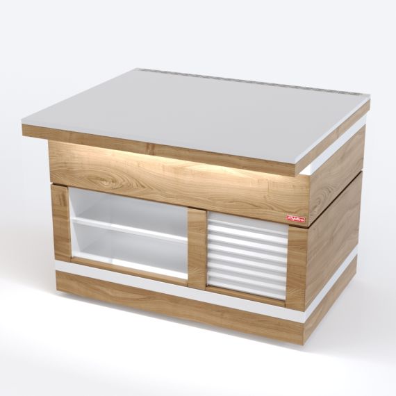 Прилавок нейтральный относится к относится к Шведским столам «Filin» торговой марки «Refettorio». Прилавок используется в качестве вспомогательного элемента. Исполнение - пристенное. Столешница из искусственного камня. Максимальная распределенная нагрузка на столешницу прилавка – 100 кг. Имеет светодиодную подсветку фасадной части. В стандартный комплект поставки боковые фасады не входят (доп. опция). В комплект входит комбинированный фасад ниша/жалюзи - К.