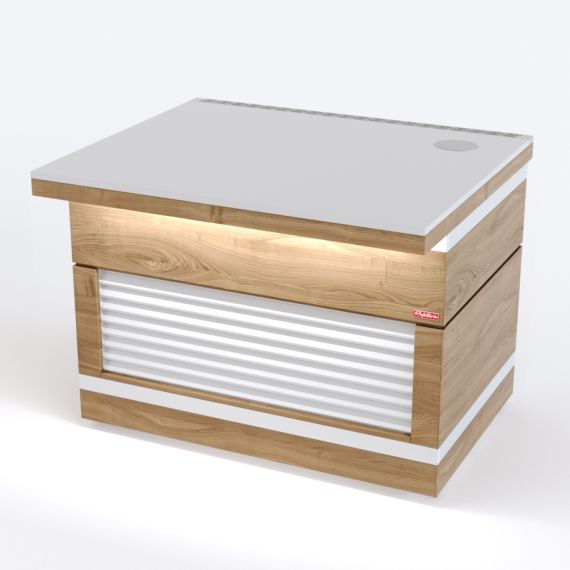 Прилавок нейтральный относится к относится к Шведским столам «Filin» торговой марки «Refettorio». Прилавок используется в качестве вспомогательного элемента. Исполнение - пристенное. Столешница из искусственного камня со встроенной розеткой. Максимальная распределенная нагрузка на столешницу прилавка – 100 кг. Имеет светодиодную подсветку фасадной части. В стандартный комплект поставки боковые фасады не входят (доп. опция). В комплект входит фасад с жалюзи - Ж.