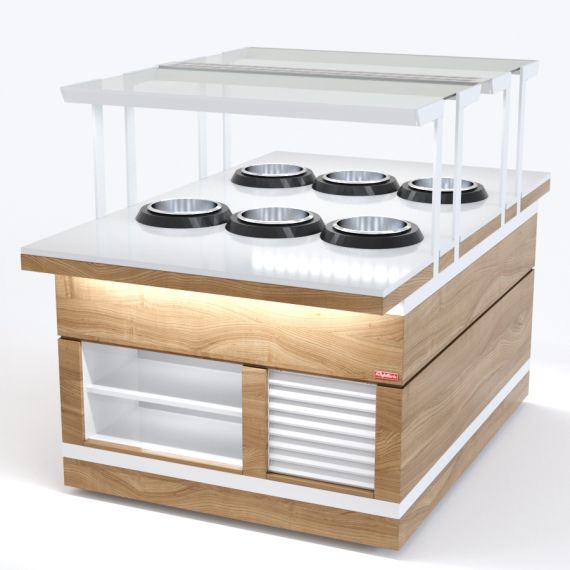 Мармит для первых блюд относится к Шведским столам «Filin» торговой марки «Refettorio». Мармит предназначен для поддержания в горячем состоянии емкостей с первыми блюдами и раздачи их потребителю. Исполнение - сдвоенное. Вместимость супницы - 10 литров. Электросупницы - 6шт. Терморегулятор от 0 до 95С°. Мармит оснащён стеклянной полкой. Максимальная распределенная нагрузка на стеклянную полку 10кг. Имеет светодиодную подсветку в нише фасадной части и подсветку рабочей зоны. В стандартный комплект поставки боковые фасады не входят (доп. опция). В комплект входит: КК - 2 фасада комбинированных ниша/жалюзи.