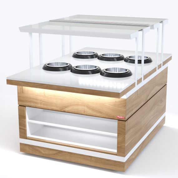 Мармит для первых блюд относится к Шведским столам «Filin» торговой марки «Refettorio». Мармит предназначен для поддержания в горячем состоянии емкостей с первыми блюдами и раздачи их потребителю. Исполнение - сдвоенное. Вместимость супницы - 10 литров. Электросупницы - 6шт. Терморегулятор от 0 до 95С°. Мармит оснащён стеклянной полкой. Максимальная распределенная нагрузка на стеклянную полку 10кг. Имеет светодиодную подсветку в нише фасадной части и подсветку рабочей зоны. В стандартный комплект поставки боковые фасады не входят (доп. опция). В комплект входит: Н - фасад с нишей К - фасад комбинированный ниша/жалюзи.