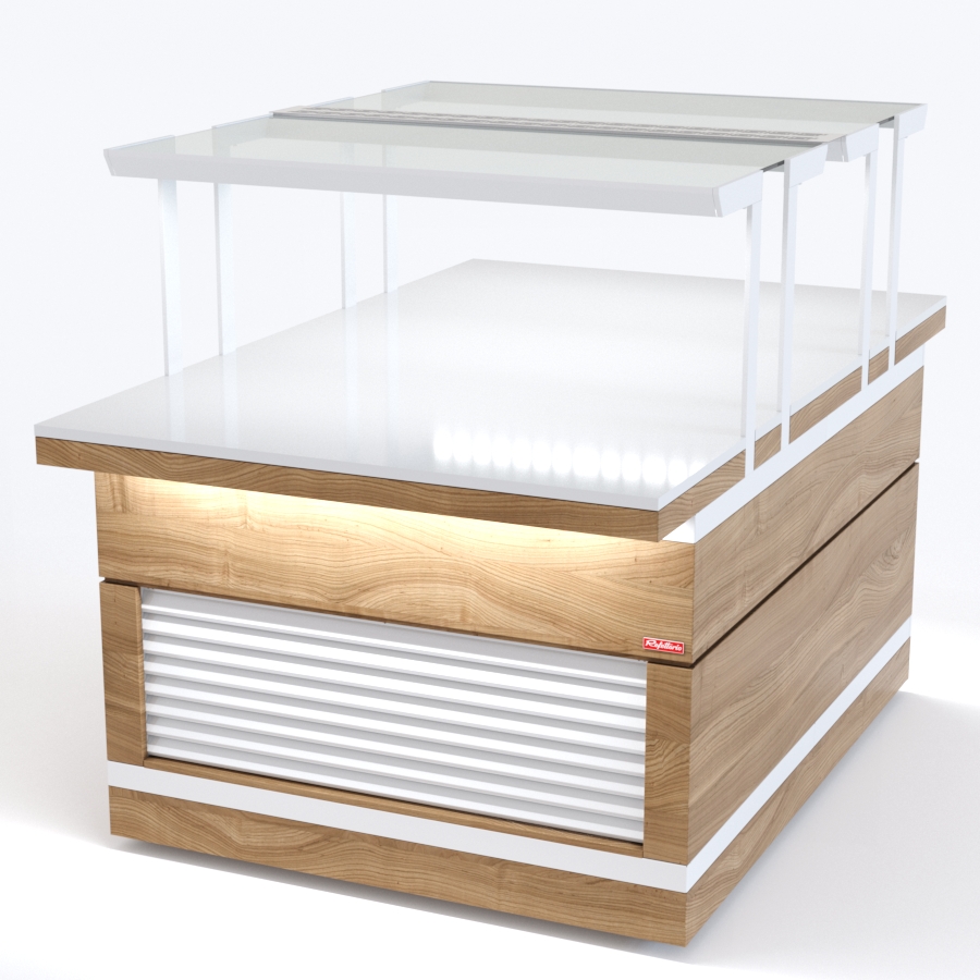 Прилавок нейтральный относится к относится к Шведским столам «Filin» торговой марки «Refettorio». Прилавок используется в качестве вспомогательного элемента. Исполнение - сдвоенное. Столешница из искусственного камня. Прилавок оснащён стеклянными полками. Максимальная распределенная нагрузка на стеклянную полку – 10 кг. Максимальная распределенная нагрузка на столешницу прилавка – 100 кг. Имеет светодиодную подсветку в нише фасадной части и подсветку рабочей зоны. В стандартный комплект поставки боковые фасады не входят (доп. опция). В комплект входит: ЖЖ - 2 фасада с жалюзи.