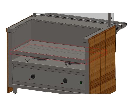 Полка для мармита первых блюд ставится на столешницу с конфорками, используется как дополнительное рабочее пространство.