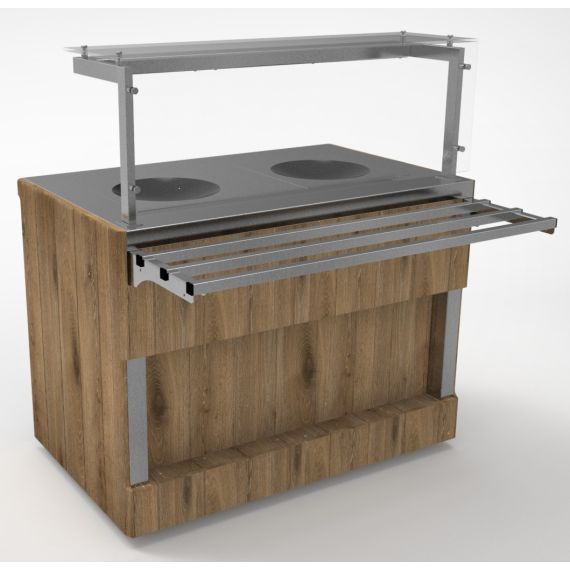 Прилавок с конфорками wok относится к линии раздачи «Capital» торговой марки «Refettorio». Предназначен для длительного поддержания в горячем состоянии пищи и тепловой обработки пищевых полуфабрикатов в функциональных емкостях (WOK - сковороды). Диаметр вогнутой части 375 мм. Глубина вогнутой части 40 мм. Работает в двух регулировочных режимах: «режим автоматического регулирования температуры» (60?240) и «режим автоматического регулирования мощности» (1?10). Столешница из нержавеющей стали. Оснащен полкой и защитным стеклом. Максимальная распределенная нагрузка на стеклянную полку 15кг. Имеет светодиодную подсветку в нише фасадной части и подсветку рабочей зоны. Со стороны персонала в прилавке есть ниша для инвентаря и розетки с защитной крышкой. Как дополнительная опция ниша может быть снабжена створчатой дверкой. В стандартный комплект поставки направляющая и фасады не входят (доп. опция). Ширина витрины, указанная в ее наименовании, не учитывает ширину фасадов (См. чертеж общего вида).