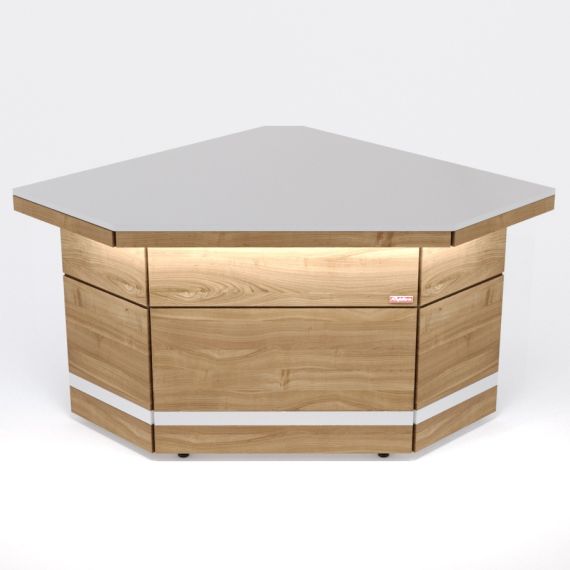 Прилавок нейтральный угловой относится к относится к Шведским столам «Filin» торговой марки «Refettorio». Используется для удобства комплектации модулей под углом 90 градусов в линию прилавков, является промежуточным вспомогательным элементом. Исполнение - островное. Столешница из искусственного камня. Имеет светодиодную подсветку в фасадной части. В комплект входит: СC - фасад сплошной.