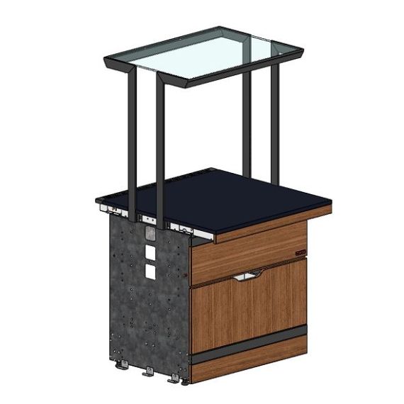 Нестандарт: Увеличенная высота полки - 700мм от столешницы до полки, глубина модуля 860мм. Прилавок нейтральный относится к относится к Шведским столам «Filin» торговой марки «Refettorio». Прилавок используется в качестве вспомогательного элемента. Исполнение - пристенное. Столешница из искусственного камня. Прилавок оснащён стеклянными полками. Максимальная распределенная нагрузка на стеклянную полку – 10 кг. Максимальная распределенная нагрузка на столешницу прилавка – 100 кг. Имеет светодиодную подсветку фасадной части и подсветку рабочей зоны. В стандартный комплект поставки боковые фасады не входят (доп. опция). В комплект входит выдвижной ящик со сплошным фасадом - Я.