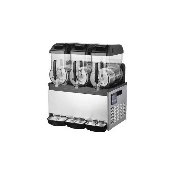 Гранитор т.м. EKSI серии SMB, мод. SMB-3x15L, 603х550х740мм, 1000Вт, 220~240В/50Гц, -2...-4C, вместимость 3х15л. Гранитор EKSI SMB-3x15L - это современный аппарат для производства популярного в жару напитка, называемого из-за своей консистенции "фруктовым снегом". Кроме того, устройство нередко может использоваться для охлаждения или смешивания напитков и создания коктейлей. Отдельное влияние по покупателей оказывает сам процесс приготовления, который можно наблюдать за счет прозрачных стенок резервуаров. Приготовление ледяного десерта, напоминающего нечто среднее между мороженым и соком, молочным коктейлем незаменимо в барах, летних кафетериях, ночных клубах, торговых и развлекательных центрах и других общественных заведениях.