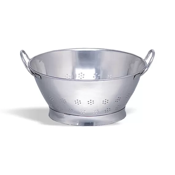 Дуршлаг 308.050 с двумя ручками полностью изготовлен из высококачественной нержавеющей стали 18/10. Габаритные размеры: диаметр - 50 см, высота - 22,5 см