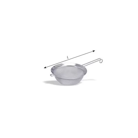 Дуршлаг 325.018. Материал: нержавеющая сталь 18/10. Рабочая поверхность представляет собой сетку с усиленным каркасом, на котором расположена 1 петля. Диаметр рабочей поверхности - 18 см, общая длина изделия - 42,5 см.