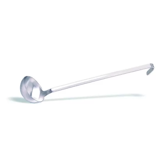 Половник 301.118 изготовлен из высококачественной нержавеющей стали 18/10. Рабочая поверхность и ручка представляют собой моноблок. Габаритные размеры: диаметр - 18 см, длина - 48 см, объем - 1,5 л.