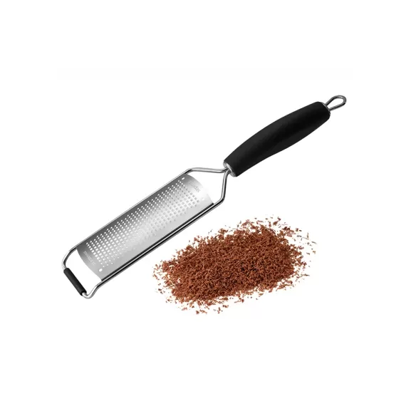 Терка односторонняя с ручкой 322.204. Материал: нержавеющая сталь, ручка- пластик. Размеры: 31,5х7,3 см.