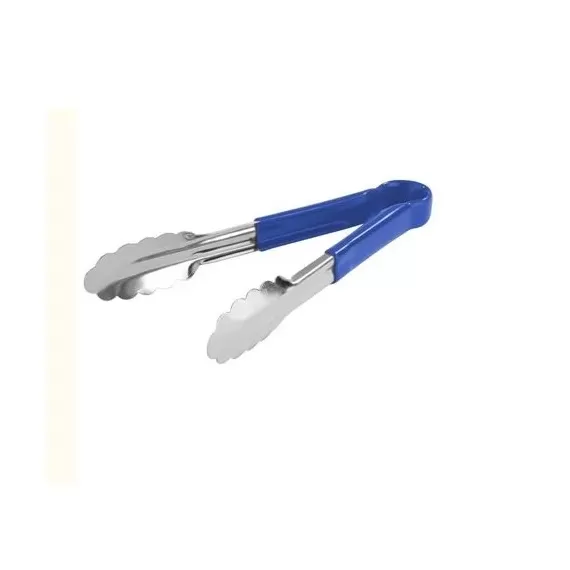 Щипцы 358.403 универсальные изготовлены из нержавеющей стали 18/10 с пластиковой ручкой синего цвета. Длина изделия - 40 см.