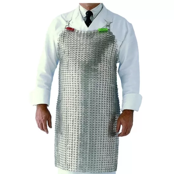 Односторонний кольчужный фартук. Изготовлен из пластин, соединенных кольцами, что делает его гибким.Соответствует стандарту EN ISO 13998 (уровень 2)