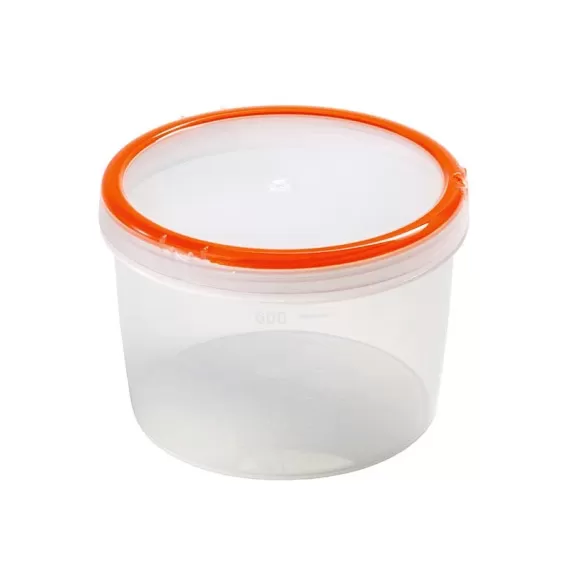 Габариты 125х125х90 мм, объем 0,75 л.Крышка в комплекте, мерная шкала.