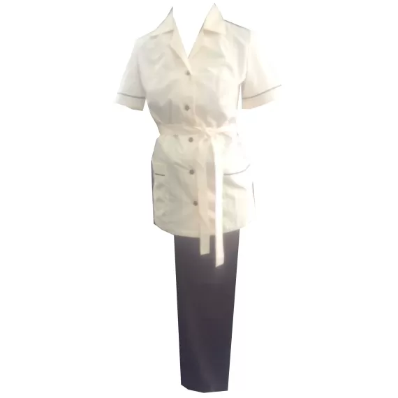 Комплект женский р.44 (блузон "Рельеф", кремовый, отделка шоколад+брюки, шоколад)