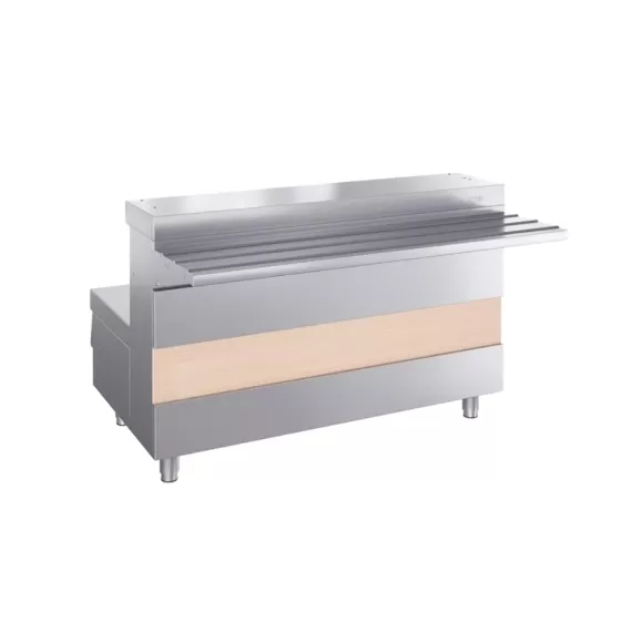 1200 х700 (1015*) х 880 ±2 0 мм, 4,02 кВт, 220 В, без полок, на столешнице отверстия для установки полок*с направляющей