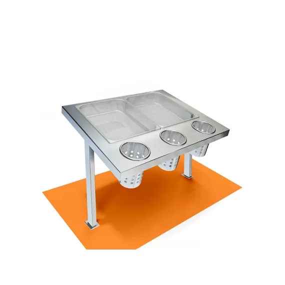 Модуль для приборов МП, 625х485х460, изготовлен из нержавеющей стали, 3 стакана под приборы и 2 гастроемкости