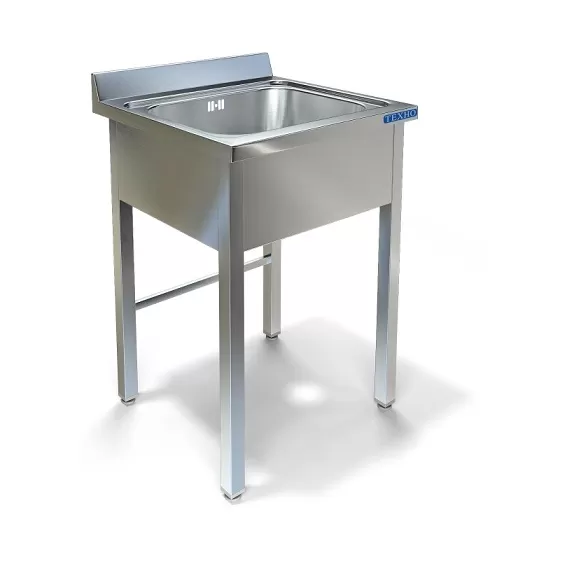 Ванна моечная из нержавеющей стали AISI 304 700х700х850 с бортом, 1 цельнотянутая мойка (500х500х300), фартук с трех сторон, смеситель, сифон с разрывом струи. Ножки -профиль из нержавеющей стали 40*40, регулируемые опоры.