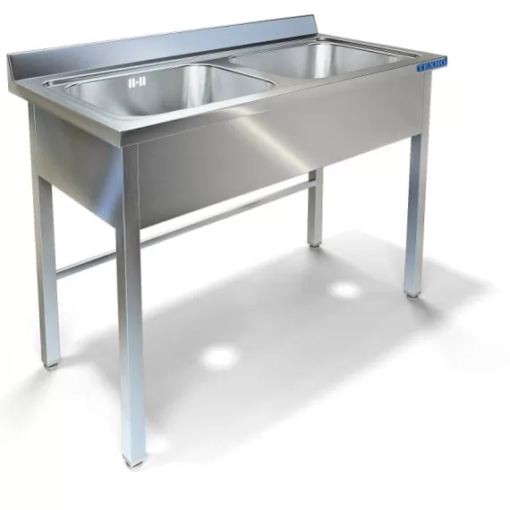 Ванна моечная из нержавеющей стали AISI 304 1200х700х850 с бортом, 2-мя цельнотянутыми мойками (500х500х300), фартук с трех сторон, смеситель, сифон с разрывом струи.Ножки -профиль из нержавеющей стали 40*40, регулируемые опоры.