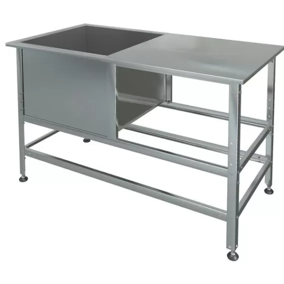 Габариты 1010х530х890 мм, материал оцинкованная сталь, углок 40х40 мм, с бортом.Емкость нержавеющая сталь AISI 304 t=0,6, без отверстия под смеситель.