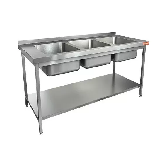 Моечная ванна б/фарт., карк.-оц.уг., 3 мойки (500х500х300) НСО3М-16/7БП ЭЦ (1600х700х870h)