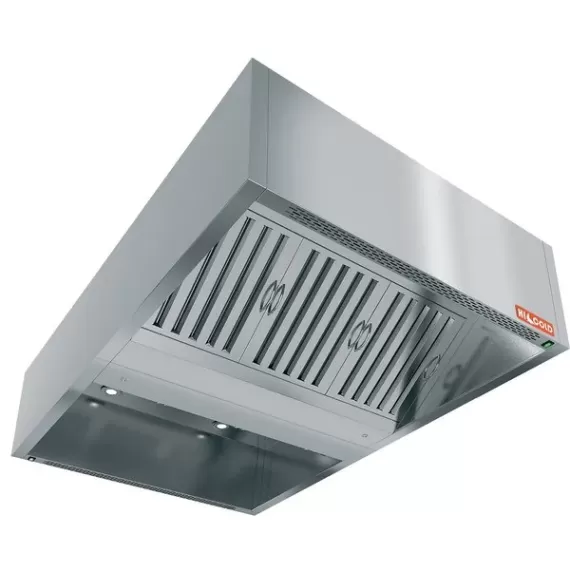 Зонт вытяжной серии ЗКВООС-1512 коробчатый остр., с ж/у фильтрами, с отв., с подсв.