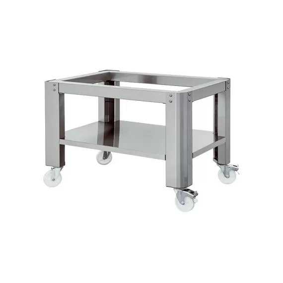 Стенд для печи для пиццы т.м. WLBake серии WellPizza, мод. Rapido 20, 600x865x632 мм, изготовлен из нержавеющей стали, оснащен колесами со стопором для удобства перемещения, позволяет устанавливать до 2 конвейерных печей в колонну